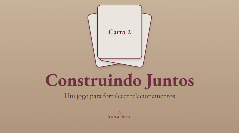 O Baralho Interativo Construindo Juntos é um jogo digital criado para casais que vivem o desafio da dupla carreira, e que, mesmo em meio à correria da vida profissional, desejam manter o diálogo, a leveza e o amor no cotidiano.